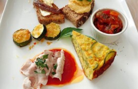 (オードブル、塩麹チキン、青柚子胡椒唐揚げ、アンチョビソース青柚子胡椒添え、デザート)