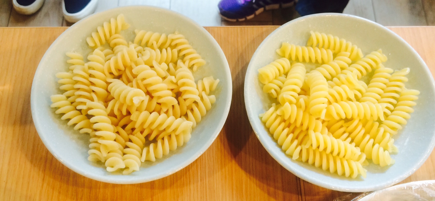 小麦についてのミニレクチャーもあり、実際に市販のパスタと古代小麦の低温乾燥パスタを茹で比べ、その違いを実感して頂きました。