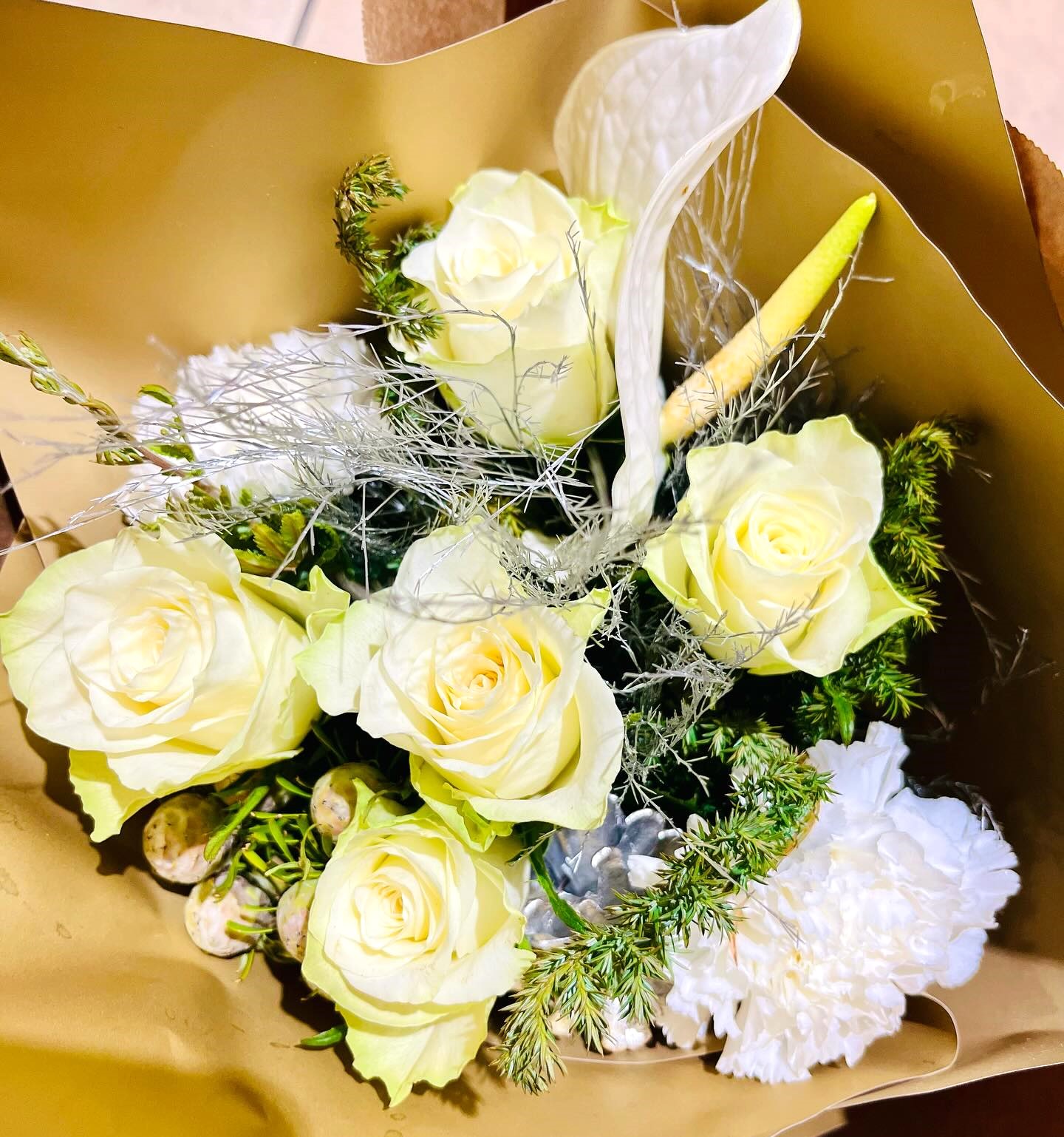 あれこれ、手に取り、アレンジ考え、結局、好きな白に落ち着く。