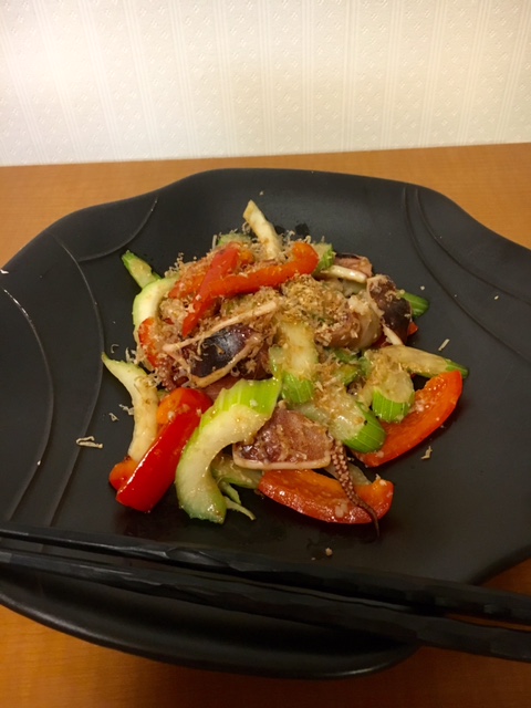 『イカとセロリ、パプリカの塩麹炒め』〜佐渡の食材を楽しむ2