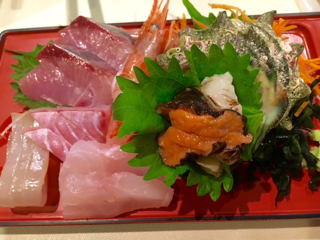 ご存知の通り佐渡は海の幸が豊富です。新鮮なウニ、牡蠣、もずく、お刺身。