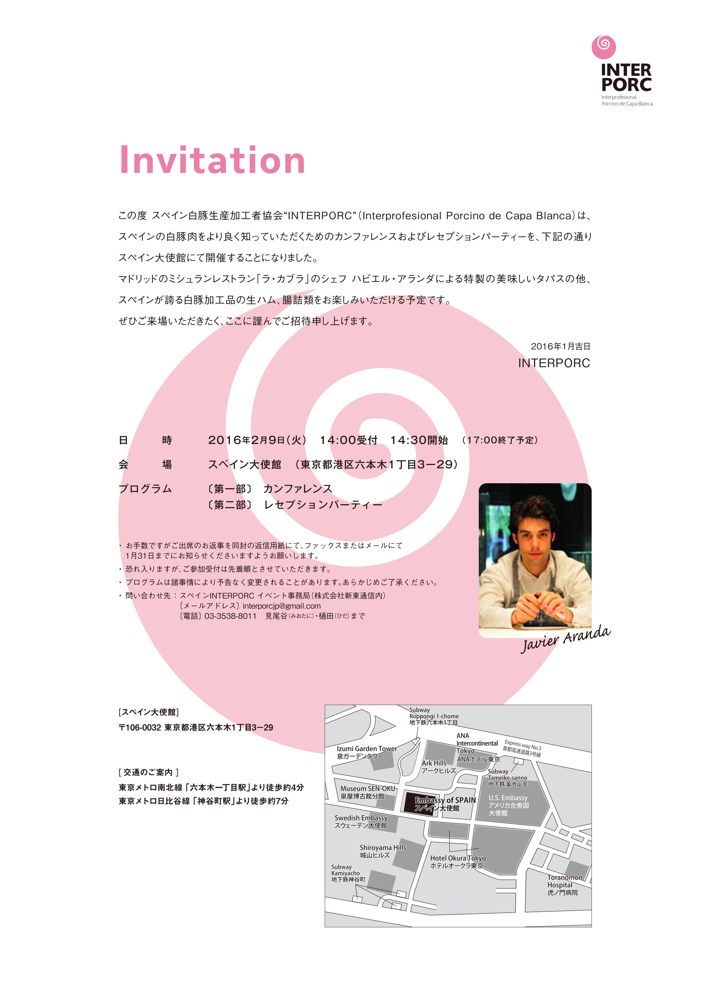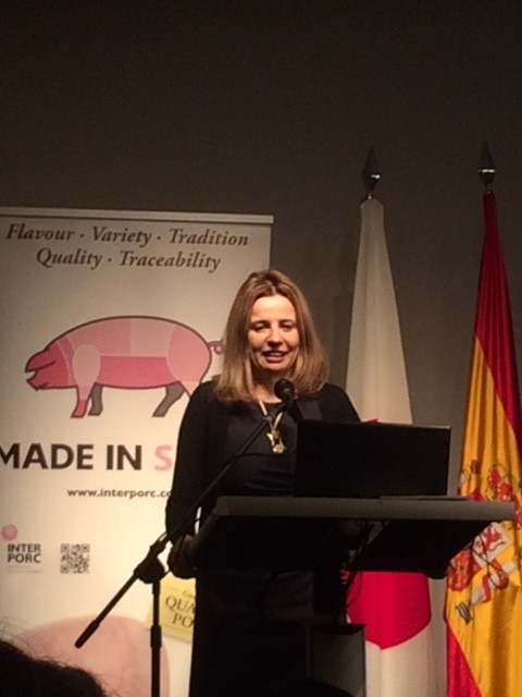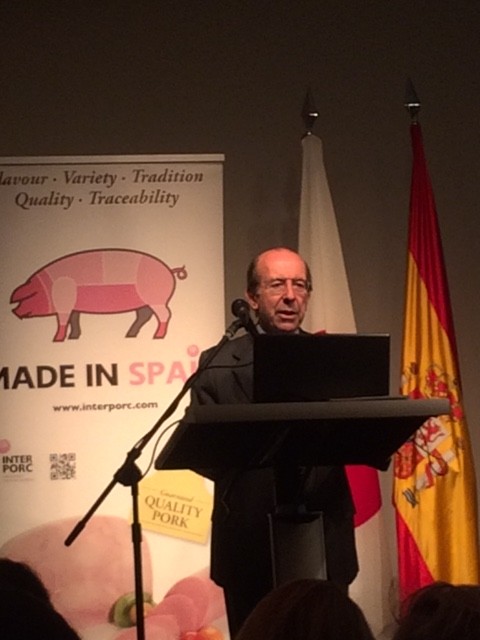 スペイン白豚の勉強をしてきました。場所はスペイン大使館。主催はInterporc(スペイン白豚生産加工協会)。カンファレンスとレスプションの2部でした。