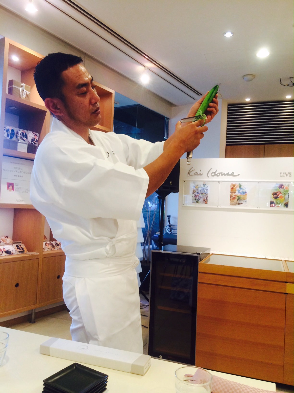 橋本料理長に「切ること」の大切さ、道具の手入れ、包丁についてなど基本を中心に和食について学びました。