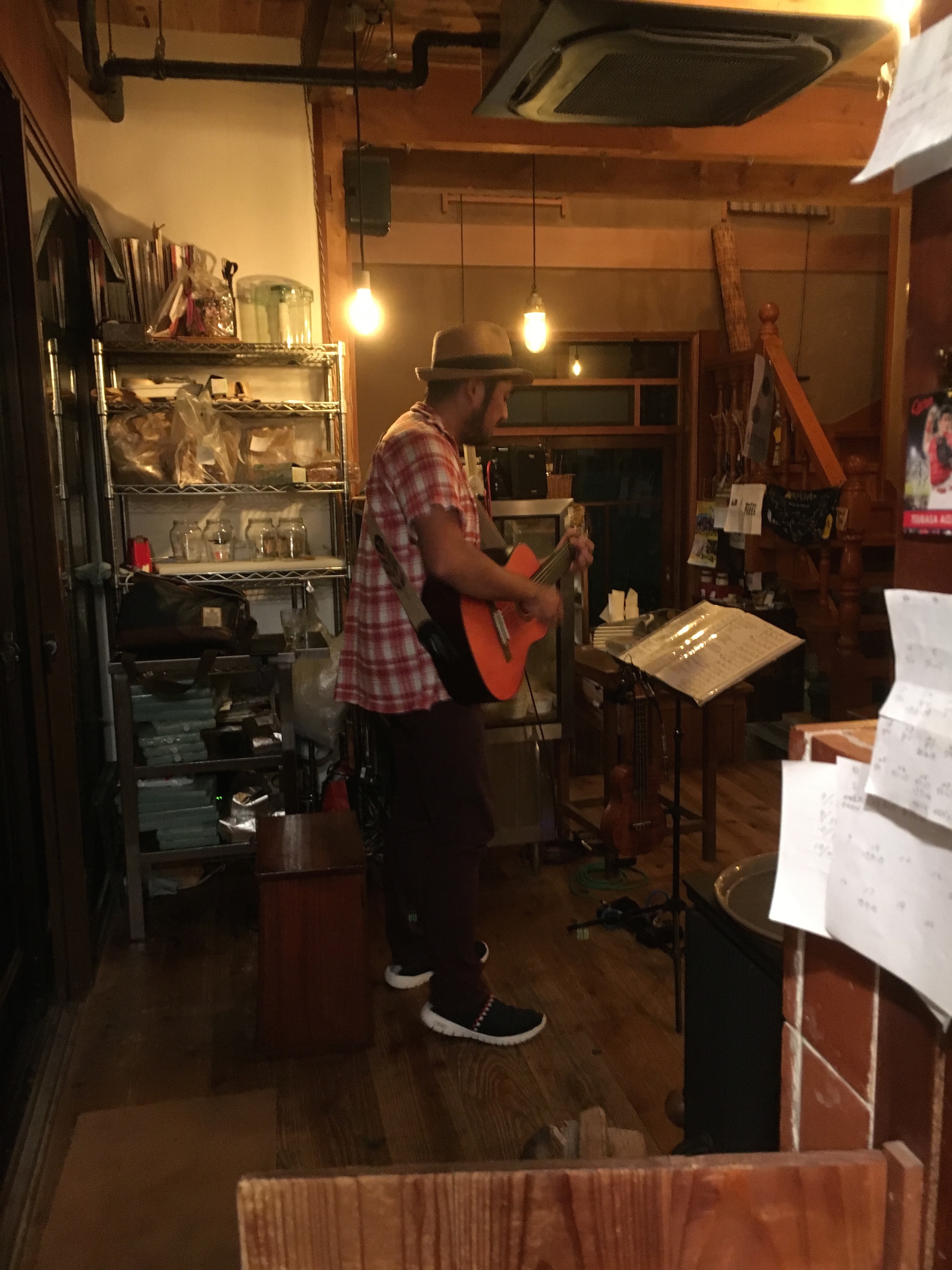 ライブは小さなカフェなのでほぼ生音でのライブでした。木造の建物で生音で唄うのも気持ちええですね。
